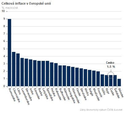 Tuzemská inflace je druhá nejnižší v EU